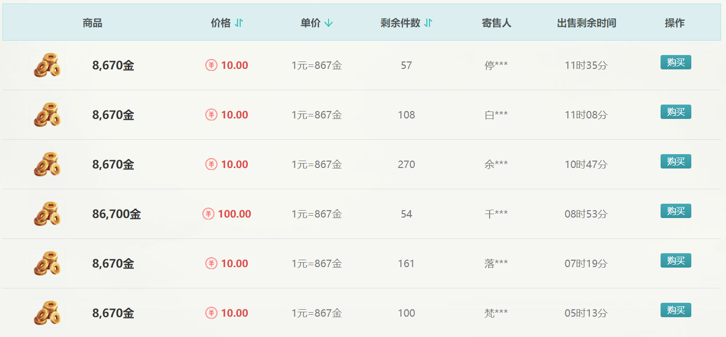 作为一款运营多年的经典网游,《剑网3》玩家基数稳定、金价也十分坚挺,目前金价维持在约867金=1元。