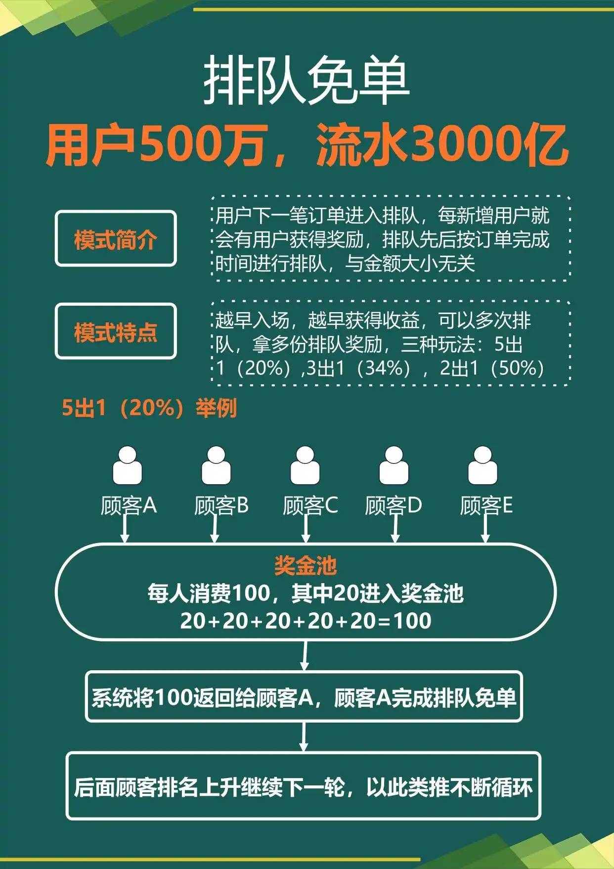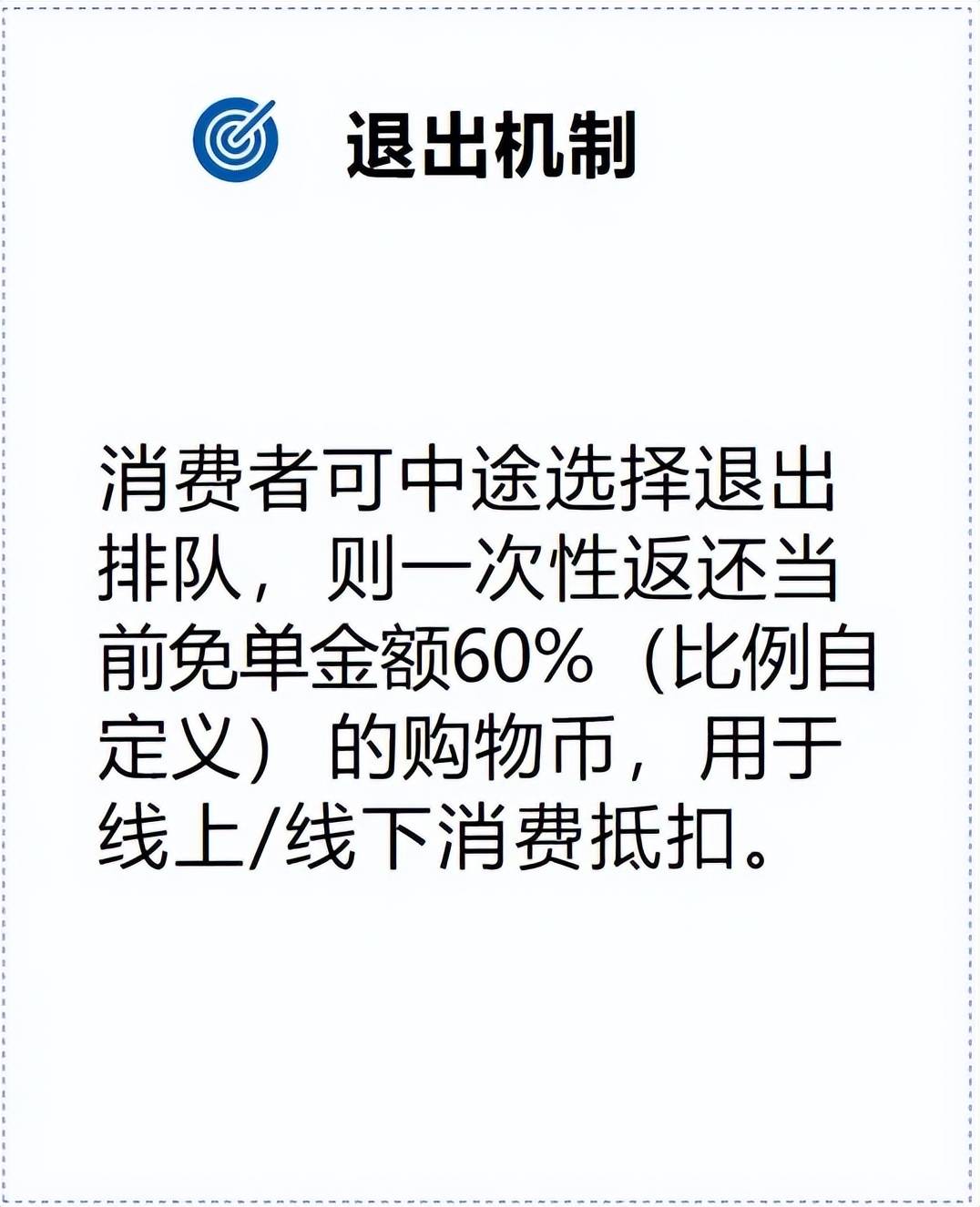 该模式将每次消费转化为免单排队的入场券。用户在消费商品的同时自动进入平台统一排序的免单队列,采用先到先得原则激发早鸟效应。