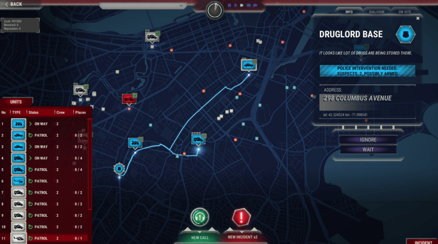 游戏提供了生涯模式和自由模式,自由模式下玩家可以选择全世界任意一座城市进行游戏,游戏系统会自动下载真实的城市地图、街道和地址数据。玩家必须在有限的资源和实时发生的突发事件之间取得平衡,比如处理简单的恶作剧电话、严重的交通事故,甚至是炸弹威胁等多样化事件。