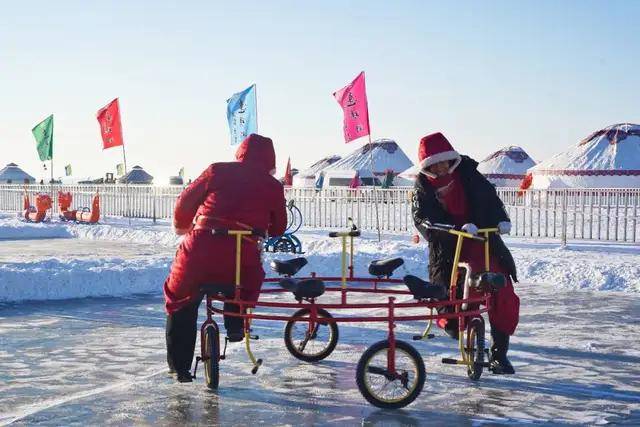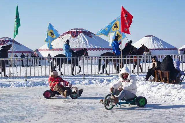 连环湖上划分了很多区域,最受小朋友喜欢的应该是游戏区了,有冰上保龄球,冰上自行车、冰上陀螺等等,作为南方人的我也感受了一番杜尔伯特人的童年!真的想不到相似的游戏,到了冰层之上别有一番趣味!