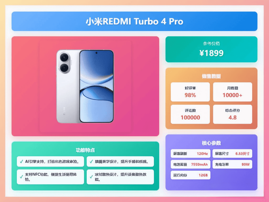 小米REDMI Turbo 4 Pro搭载了第四代骁龙8s处理器,处理速度非常快,玩游戏和多任务切换都毫无压力。配合12GB的大内存,打开多个应用也能秒秒钟搞定,体验感非常顺畅,不会出现卡顿。