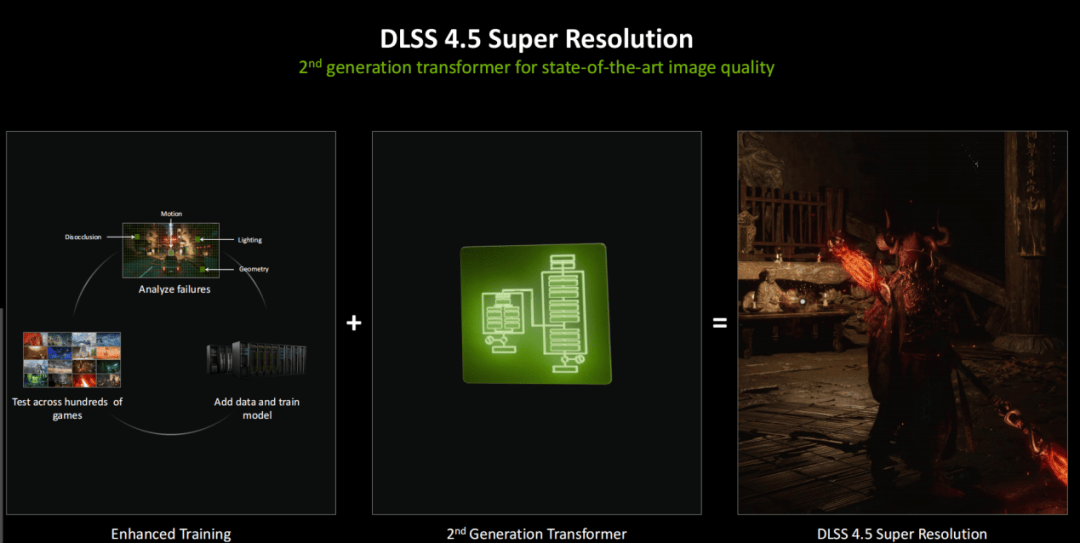 DLSS 4.5是通过NVIDIA App以DLSS优设模式实现,目前已经支持超过400款游戏包括将于2026年内发布的重磅游戏:《生化危机:安魂曲》《影之刃:零》《007:初露锋芒》以及《PRAGMATA》。DLSS 4.5带来的基于第二代Transformer模型的超分辨率技术现在已经开放支持GeForce RTX GPU,而更核心的最高6倍多帧生成功能预计将在2026年春季正式上线一样,动态多帧生成功能目前也仅有RTX 50系GPU可以享受。