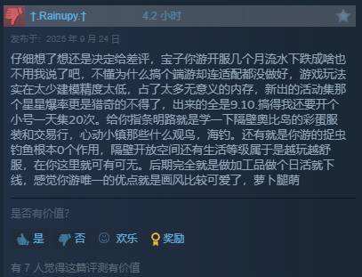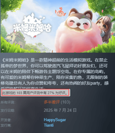 游戏上线后,评价很快出现分化,一部分玩家喜欢它的治愈氛围、童话美术和建造过程;