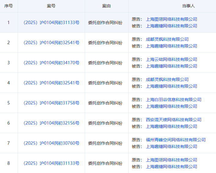 2026年1月起,公司开始陷入多起合同纠纷,多家美术外包公司起诉趣糖网络,理由无一例外都是,委托创作合同纠纷。