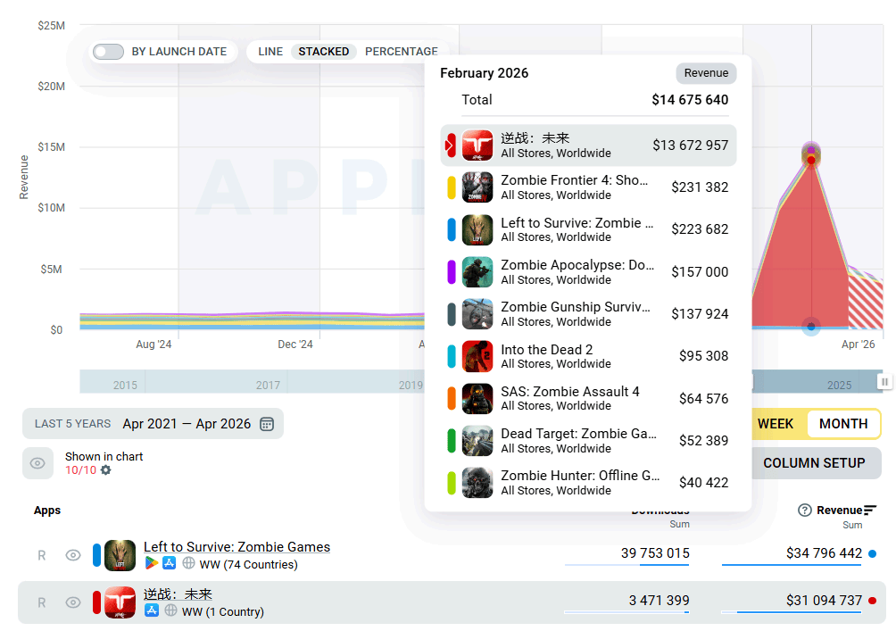 在2026年之前,生存射击还是个反响平平的赛道,全年收入相较其他热门赛道来说十分微薄,鲜有人关注。