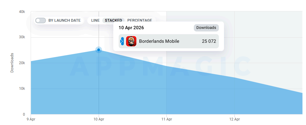 发布,更像是一次极度自信的压力测试。即便在零宣发的状态下,凭借《无主之地》这一殿堂级“刷宝射击”IP的号召力,游戏上线次日下载量便迅速飙升至2.5万次的峰值,截至4月14日累计下载已破8万。此次“限时测试”版本展示了Zynga对移动端操作的深度适配。在保留了系列标志性的“美漫渲染风格”和“无穷尽的枪械随机系统”的同时,NaturalMotion明显在性能优化和触屏反馈上下了苦功。