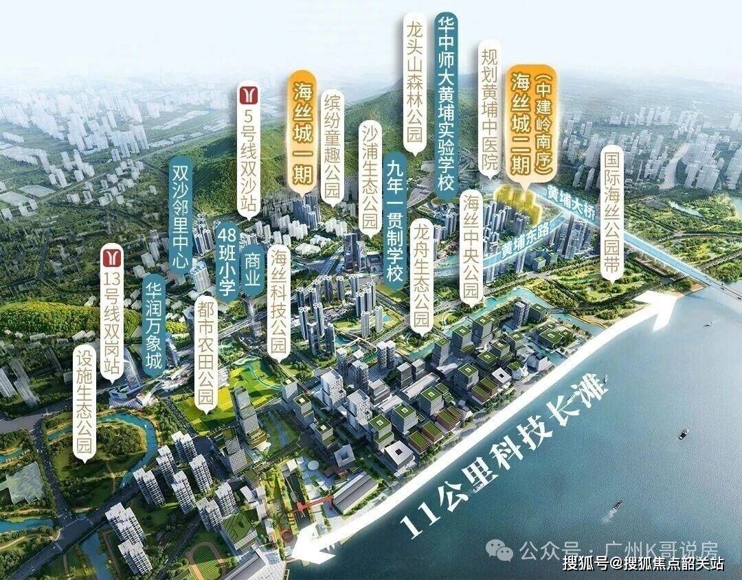 在选址上,我们经过了对整个海丝城片区的反复论证与精心筛选。最终,我们将目光锁定在了位于华中师范大学黄埔实验学校以南、紧邻黄埔大桥的黄金地段。这里不仅是连接珠金琶 CBD 的枢纽节点,更是未来广州国际金融城与黄埔临港经济区深度融合的核心地带。周边环绕着“两馆一庙”的文化地标,沙浦、双岗等岭南风貌古商业街区见证了广州商业的互促互荣,文脉之上,江景、城景、山景高度缝合了自然与繁华。这样的绝版地脉,是任何后期开发都无法复制的稀缺资源。