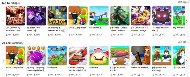 这种平台全包的模式吸引了一大批年轻人和小型团队,他们不需要自己买服务器、不需要做用户增长、不需要处理支付渠道,创作者的作品可以直接面向全球数亿玩家:卖道具,或者靠玩家在你游戏里停留的时长获得分成。大量国内外开发者涌入,把它当作练手和起步的第一站。